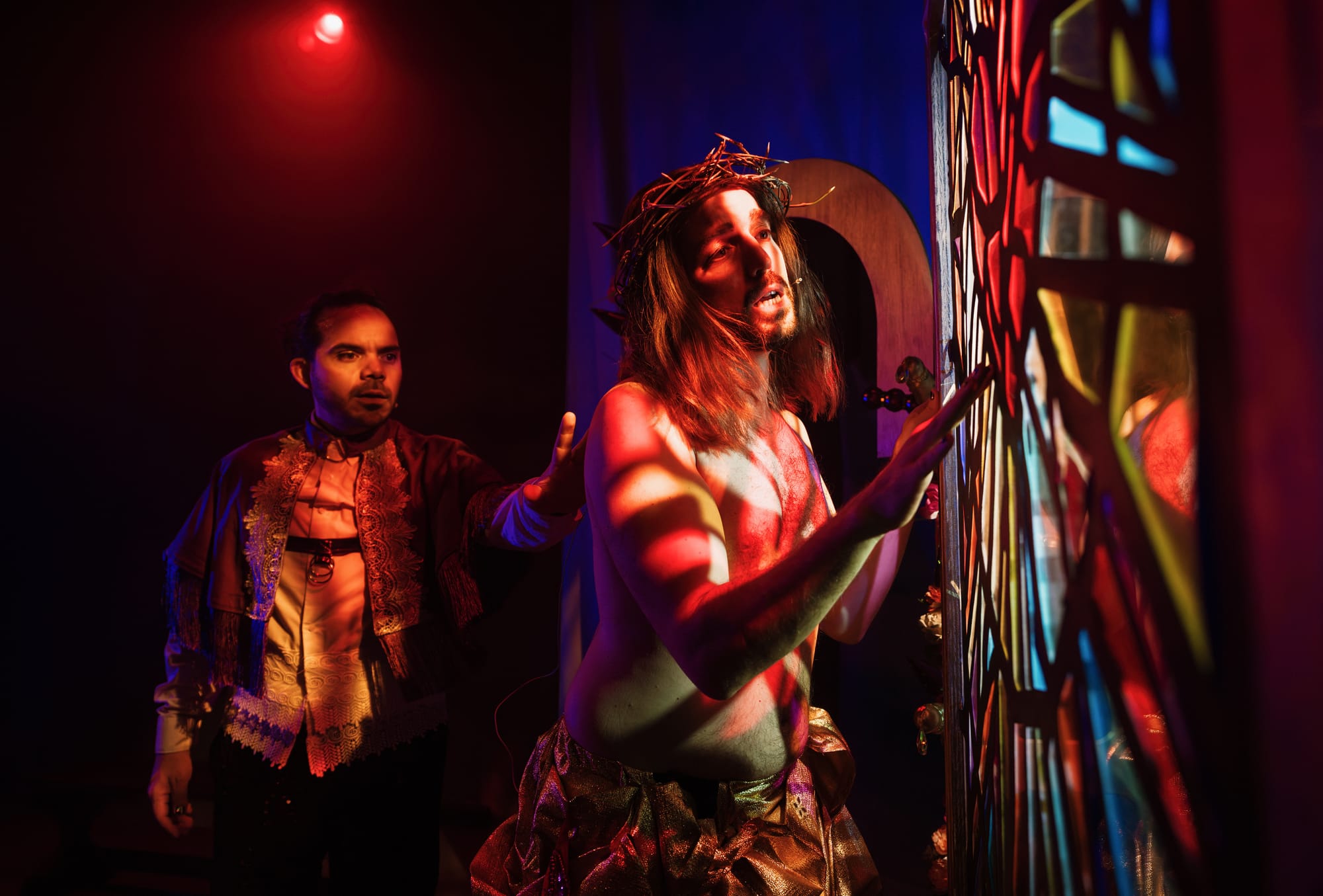 Neither have huge ringing voices, but here is the sacred truth of live theatre: authenticity will always, always perform a miracle that mere technique can't. The fervour, the comic timing, and the sheer glee with which Maggiolo and Garcia sing their own material, material they clearly believe in with something approaching doctrinal conviction is genuinely infectious. Their central comic-theological thesis, delivered with a tongue placed so firmly in cheek it risks permanent relocation, draws on the observable facts: that according to Catholic teaching, Jesus spent his earthly time surrounded by devoted men who adored him, and that on most crucifixes he is ripped. Their conclusion: that's pretty gay.