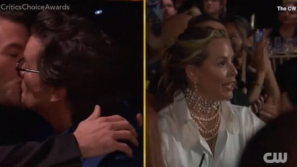 The star, 35, won the award for best supporting actor in a limited series for his role in Fellow Travelers, opposite Matt Bomer playing lovers who meet in the 1950s when homosexuality was outlawed. He kissed Matt, 46, in a sweet moment when he heard his name called for the award as he was applauded by the crowds.