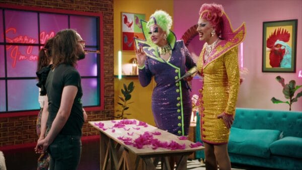 Winner Winner Chicken Dinner, an outrageous new game show hosted by leading New Zealand drag queens, Kita Mean and Anita Wigl’it, crashes onto screens with feathers flying and rules out the window on 6 June.