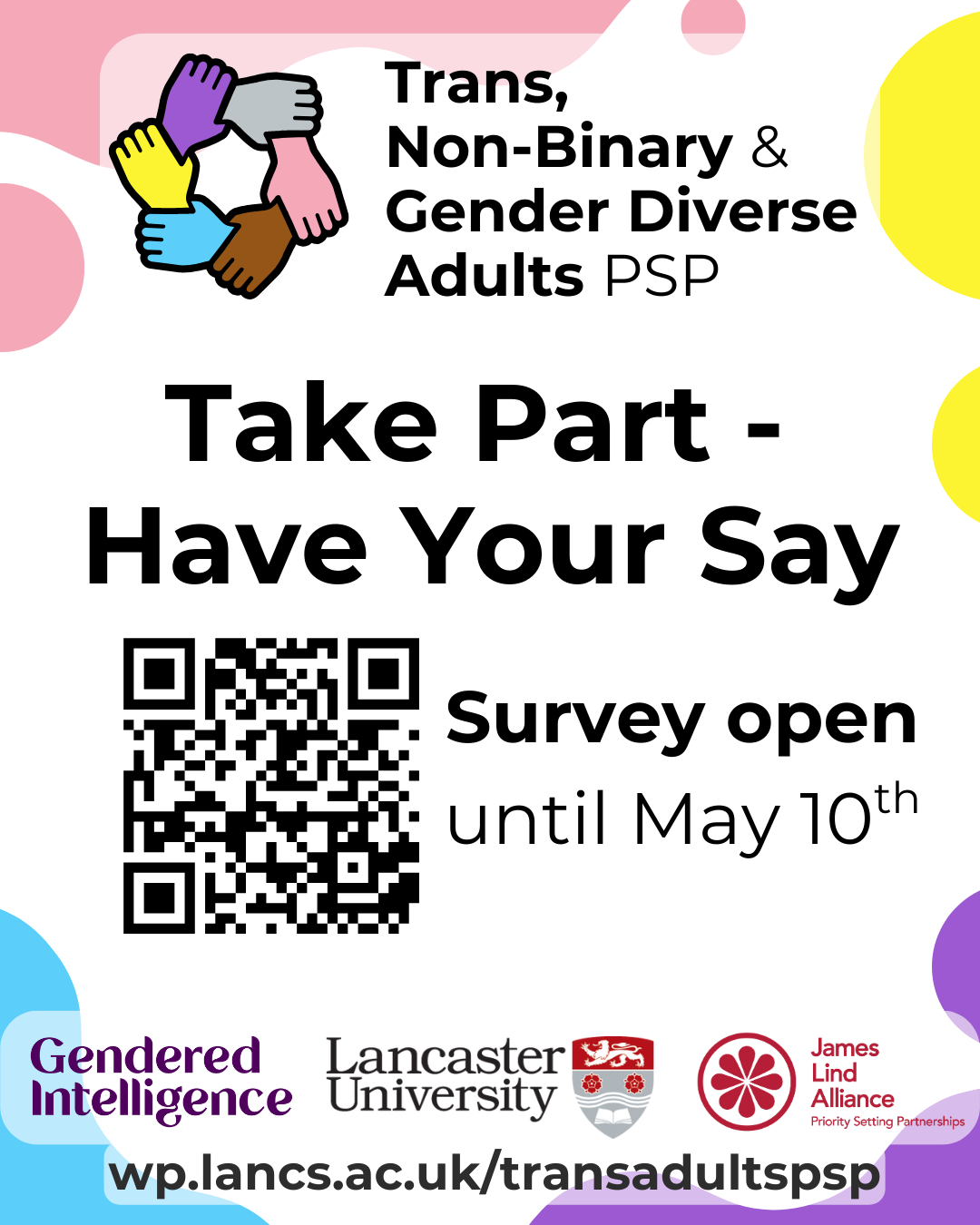 Funded by the trans-led charity Gendered Intelligence, the PSP aims to centre lived experience at every stage of its development. The charity is supporting Lancaster University’s Dr Lisa Ashmore and PhD researcher - and former Students’ Union LGBTQ+ Officer - Lilly‑Emma Thynne to run the consultation as an external project.