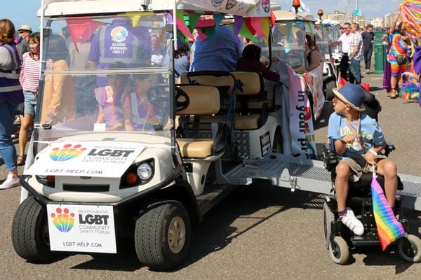Eleven years old Ronaldo and his two daddies travelled from the West Country for Ronaldo to experience the Pride community parade, enjoy the Access facilities on Preston Park and see his idols the Pet Shop Boys perform on the main stage.