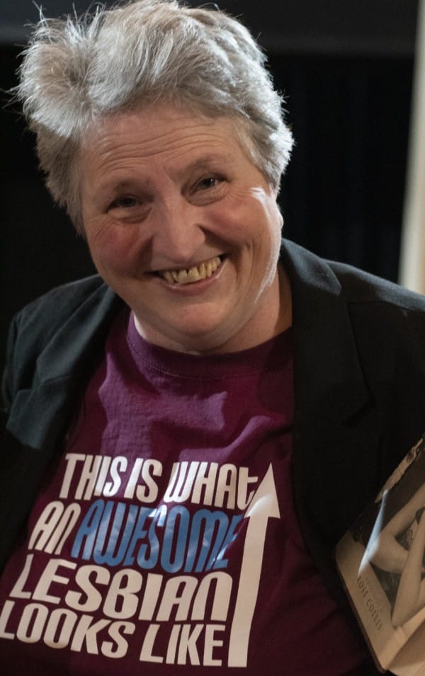 Rose Collis has been an out and proud lesbian writer, performer and activist for over four decades. She has witnessed, participated in and chronicled many key events in LGBTQ+ history, especially those affecting and emanating from the lesbian community. These include early Gay Pride/Lesbian Strength marches; the response to the AIDS crisis; battling tabloid media attacks; the creation of ground-breaking documentary Framed Youth; Gay’s the Word bookshop’s battle with HM Customs; the battles against Section 28 and her four years as the first lesbian co-editor of London magazine City Limits.