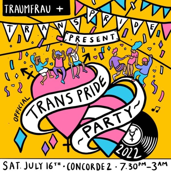 Saturday, July 16 from 7.30pm – 3am: Official Trans Pride Brighton Afterparty by Traumfau at Concorde2 (Tickets)
