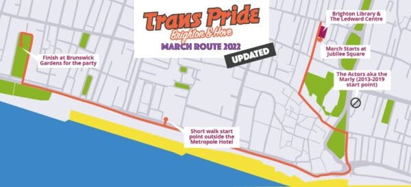 Pride EventsSaturday, July 16 from 11.30am: Trans Pride Brighton Protest March – start at Jubilee Square (sets off at 12pm sharp)