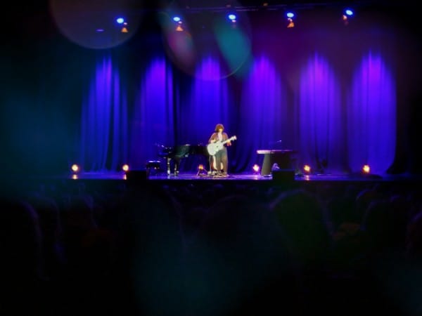 Joan lends the stage to her impeccable songwriting, and the authentic home-grown melodies of sadness, love, and hardship are pretty enough to resonate with us. With just her and her trusty guitar walking us through the MBE’s first album with renowned label BMG, songs sparkle. And her penchant for blue and purple lighting, emblazoned upon the stage behind her, just enhances the sadder, calmer more reflective sonnets from her past work too. Yet, as with everything, the wonderful live rendition of Joan’s songs, both new and old favourites, isn’t without fault.