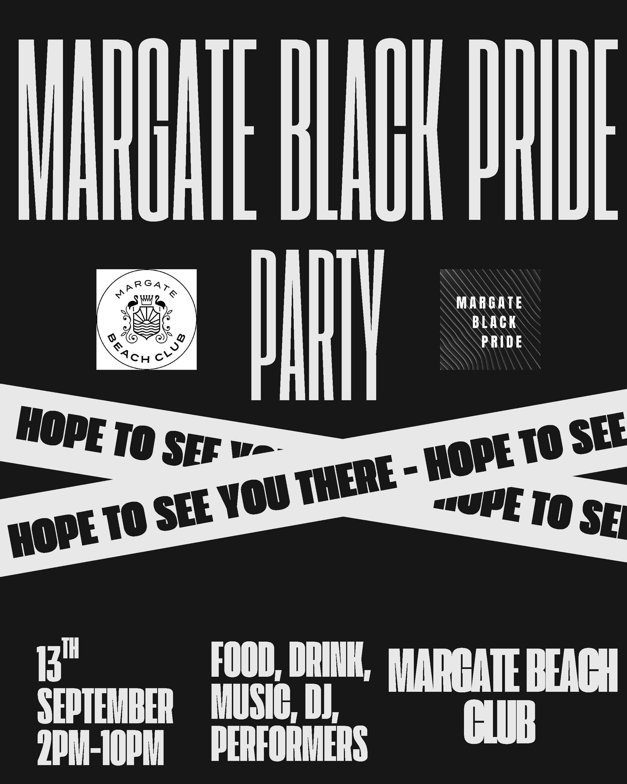 Margate Black Pride takes place on Saturday, 13 September at Margate Beach Club, 1 Albert Terrace, CT9 1UL.