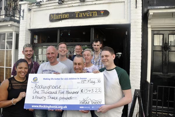 Customers and staff at the Marine Tavern in Broad Street raise £1,543.22 for Rockinghorse the official fundraising arm of the Royal Alexander Children’s Hospital.