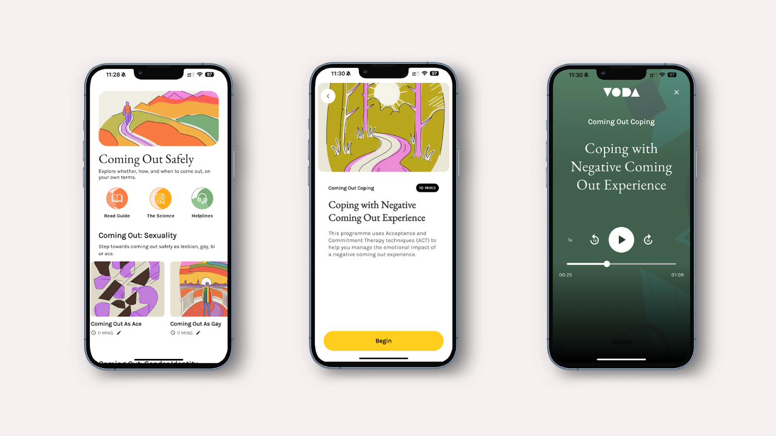 Co-created with a team of seven LGBTQ+ psychotherapists and psychologists of diverse gender, sexuality, and ethnic backgrounds, Voda combines therapeutic rigour with lived experience to provide trauma-informed, self-guided support. The app offers pathways for users navigating coming out, gender dysphoria, discrimination and hate speech.