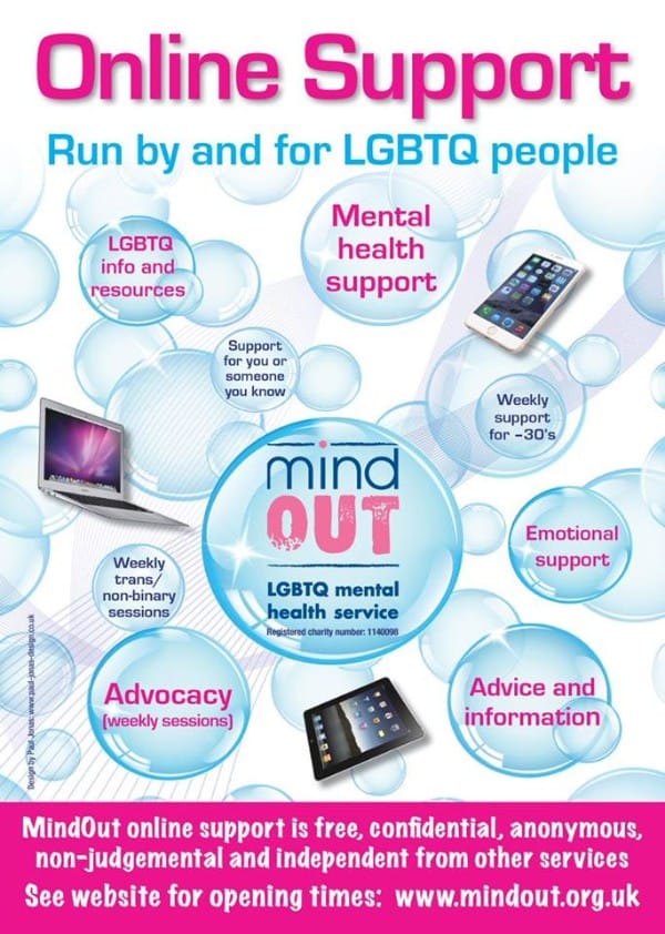 - Our online support service will be open every day: check opening times www.mindout.org.uk