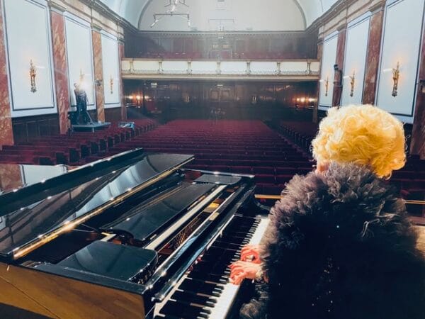 Ty plays piano and writes the songs – Miss Hope Springs is character based comedy more than drag. Ty was mentored in his twenties by Vangelis. In the 90s he was a keyboard player in Billy Mackenzie’s Associates, and in 2019, as Hope, he was Marc Almond’s support artist at The Hammersmith Eventim Apollo.