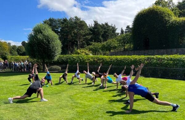 After arriving and getting settled in at Alnwick Castle on Sunday, August 20, the morning of Monday, August 21 kicked off with rehearsals for the grand finale on Saturday, August 26 and a physical workout session in the Alnwick Garden with personal trainer Simon Tate.