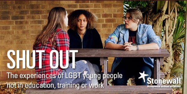 Commissioned by Stonewall and BritianThinks, the Shut Out report conducted in-depth interviews and workshops feeding back the shared experiences of 30 LGBT people who are not in education, employment or training (NEET).