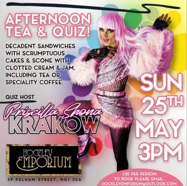Notts LGBT+ Network say: “This promises to be an afternoon not to be missed with loads of laughs! So come join our Kiki… the only place to be on late May bank holiday weekend!