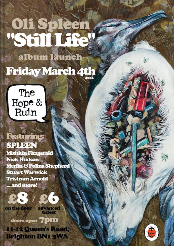 A new album from Brighton-based musician Oli Spleen is always reason to celebrate, and on March 4 the acclaimed singer and songwriter launches his latest, Still Life, with a live showcase at the Hope and Ruin