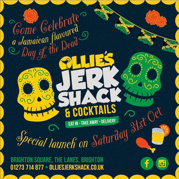 Ollie’s Jerk Shack & Cocktails, 5-20 Brighton Square, Brighton, BN1 1HD, Tel 01273 714877, Email info@olliesjerkshack.co.uk
