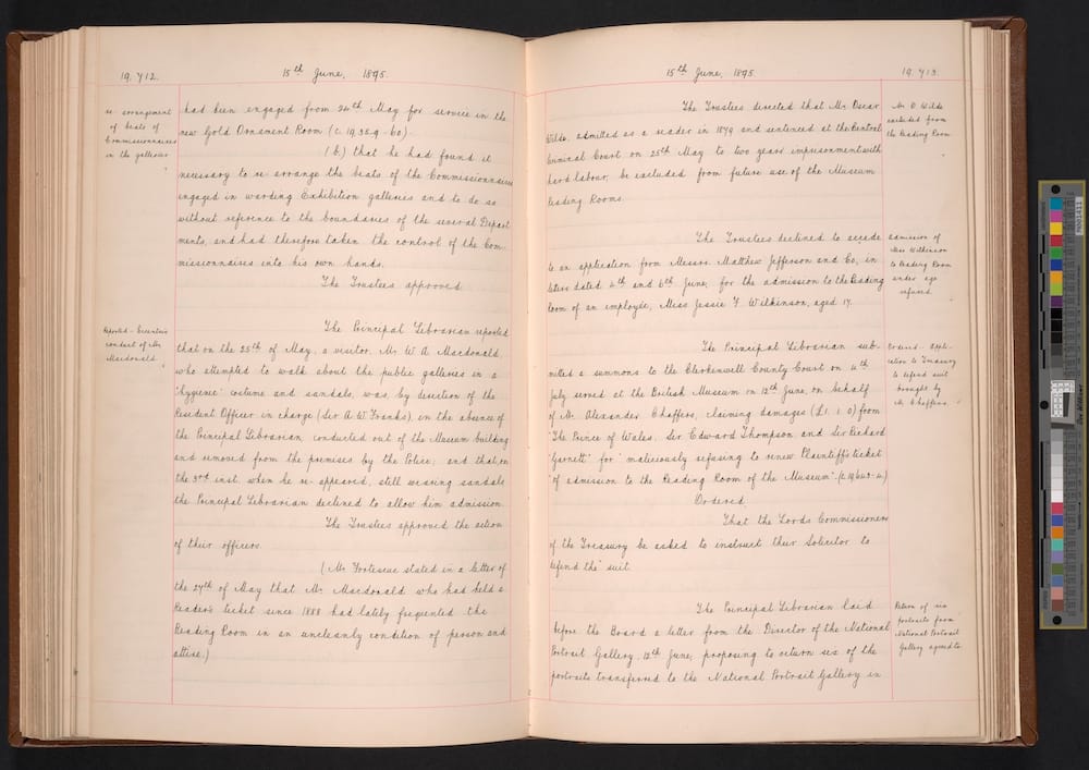 The British Library will symbolically reinstate the Reader Pass that belonged to the renowned poet and writer Oscar Wilde. As revealed in a Trustees’ entry in the British Museum’s Standing Committee Papers, Wilde was officially excluded from the Library on 15 June 1895, which at the time was still known as the British Museum’s Reading Room.