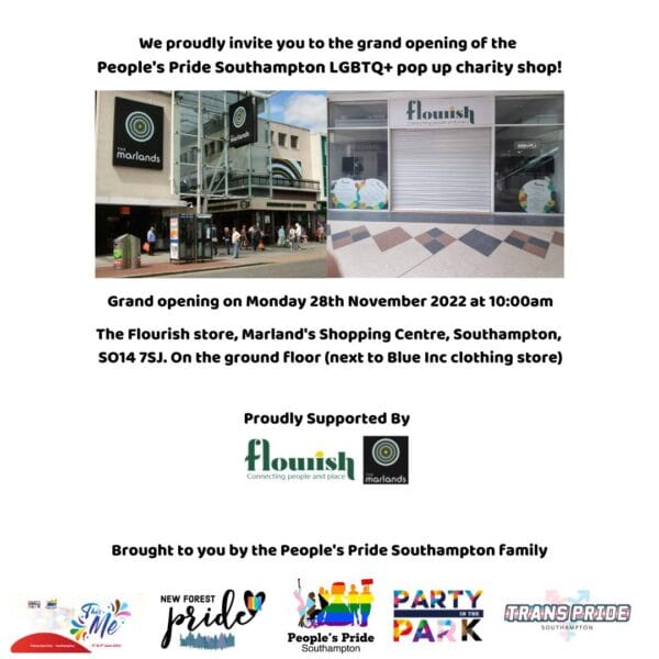 People’s Pride Southampton, the award-winning Pride charity that operates all year round, is launching a Winter Pop-Up Pride and Outreach Shop in the Marland’s Shopping Centre, Southampton from Monday, November 28.