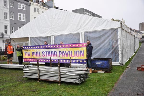 B RIGHT ON LGBT Festival.The Pavilion, a fully equipped hi-tech theatre and heated community performance space, named after the legendary drag queen Phil Starr has been constructed over the last two days. It will be completed by noon today (Wednesday, February 1) when the box office will open to sell tickets for all events during the 17 day festival.