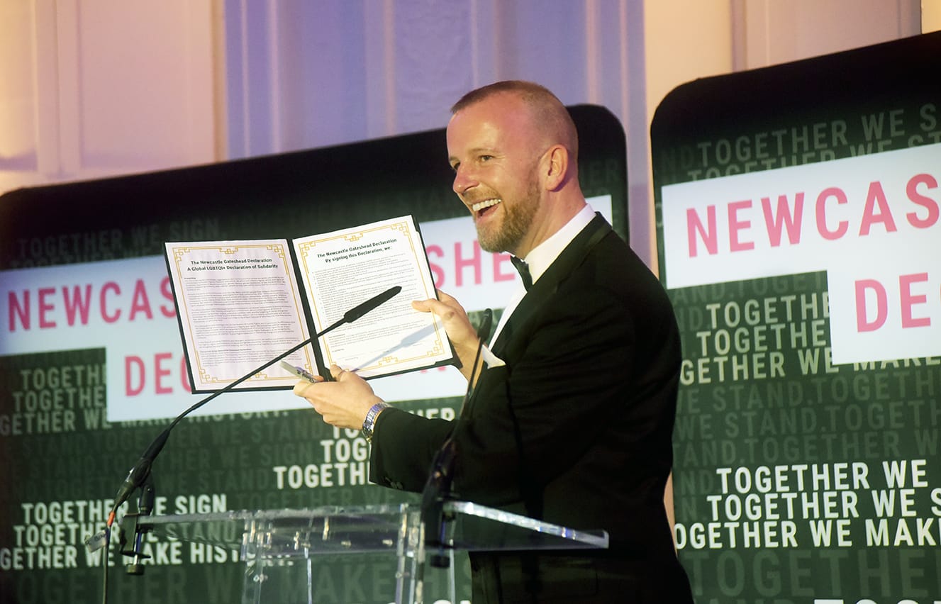 Before activists headed back to their home countries, they had one remaining duty: to launch the Newcastle-Gateshead Declaration, the first global affirmation of solidarity for LGBTQ+ communities. With pledges of support from civil society, business and city leaders, and diplomatic figures in attendance including the Belgian Ambassador to the UK, the Declaration sought to capture the spirit of the Summit and serve as an enduring rallying call for action.