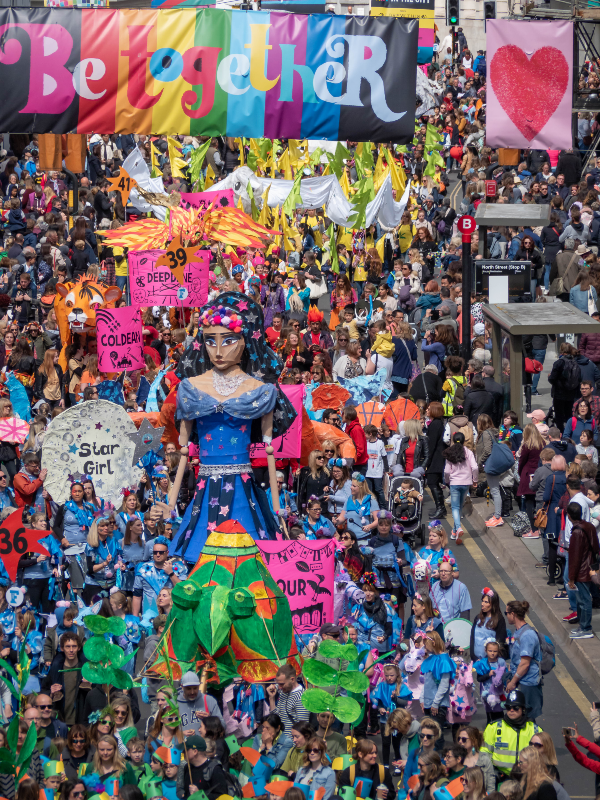 And the Festival goes out into the community with events in Hangleton, Moulsecombe and Bevendean. Opening the festivities it’s back to normal for the Childrens’ Parade, starting a month of reasons to be creative and joyful.