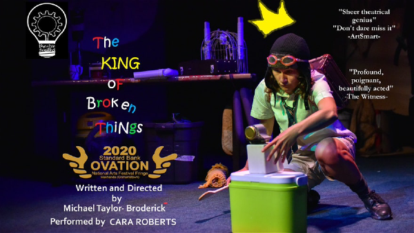 The King Of Broken Things . The world does its best to break everything and everyone, but afterwards most things are stronger in their broken places. This is an adventurous , magical excursion into the rehabilitation of broken and discarded objects – hearts included. Online production.
