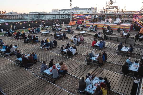 The shows will be in a purpose-built site on the beach next to the pier, off Madeira Drive. You can pre-book tables and refreshments for a single household or bubble of up to 6 people.