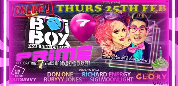 You wait for a show from the wonderful Drag King Adam All and then along come two in one week. On Thursday 25 February Adam and partner Apple Derrières will be hosting the 7th birthday of BOi BOX . From its humble beginnings in a Soho basement , it’s now established as the prime showcase for Drag Kings .