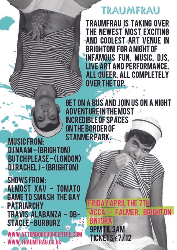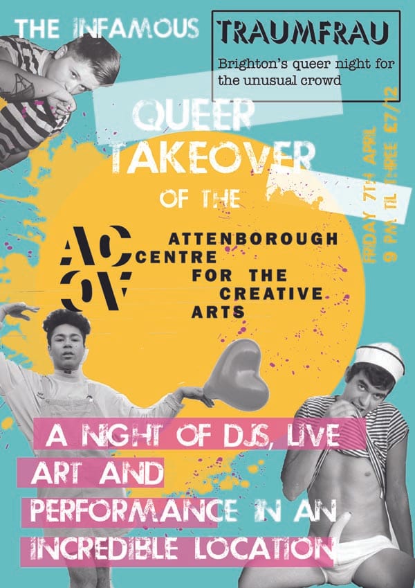 Traumfrau head out of town to take over the Attenborough Centre for Creative Arts (ACCA), one of the newest arts venues in Brighton, with a night of live art, DJs and lots of dancing on Friday, April 7 from 9.30pm.