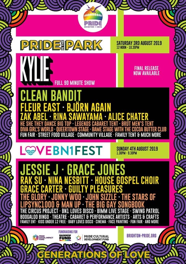 Pride Brighton and Hove reveal more artists for the main stage at Pride in the Park on Saturday, August 3 and LoveBN1Fest on Sunday, August 4.