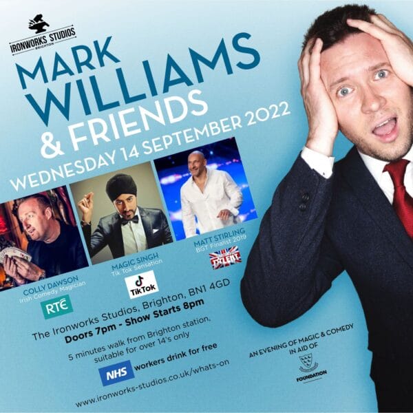 An evening of magic & entertainment from Sussex based stand up magician Mark Williams. Plus Irish funny man Colly Dawson, Tik Tok sensation Magic Singh and Britain’s Got Talent magician Matt Stirling. For tickets, CLICK HERE