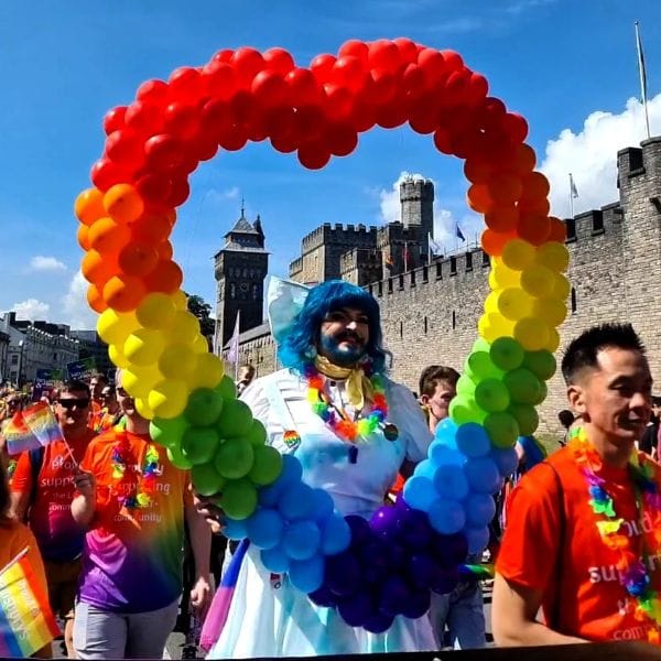 The Cardiff Pride march is a community parade, filled with protest, performance, and some fierce looks, with all of Wales main LGBTQ+ groups, venues and employers taking part along with hundreds of smaller support and social groups, it’s a lush parade – as they say there.