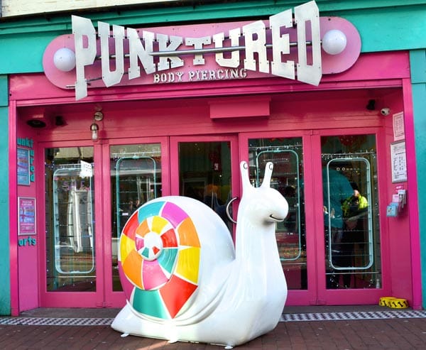 Based in the North Laine, Punktured is the city’s ‘go to’ piercing studio for people looking for body adornment. Now in it’s 18th year, Punktured is celebrating with its very own giant gastropod on the Snailway this autumn.