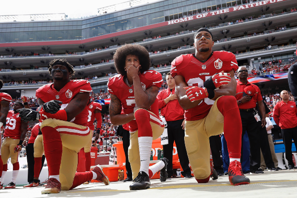 Taking the knee started as a protest at NFL American football games in 2016 by San Francisco 49ers quarterback Colin Kaepernick. It is tradition at American sporting events to play their national anthem, the Star Spangled Banner, before games commence. Kaepernick and fellow player Eric Reid, both African-Americans, took the knee during the anthem to highlight racial inequality and police brutality.