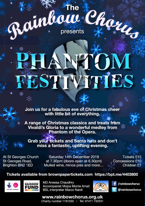 Rainbow Chorus dished up a sumptuous table of musical delights in their Phantom Festivities concert at the packed-to the rafters St George’s Church, Kemptown.