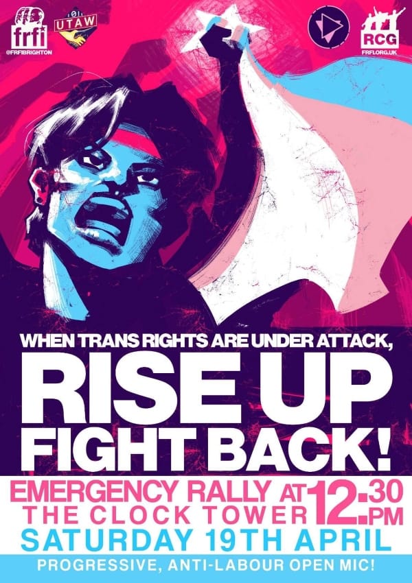 In a powerful show of solidarity, FRFI Brighton, The Queery, and UTAW UK are organising an emergency gathering at the Clock Tower to stand firm for trans rights.