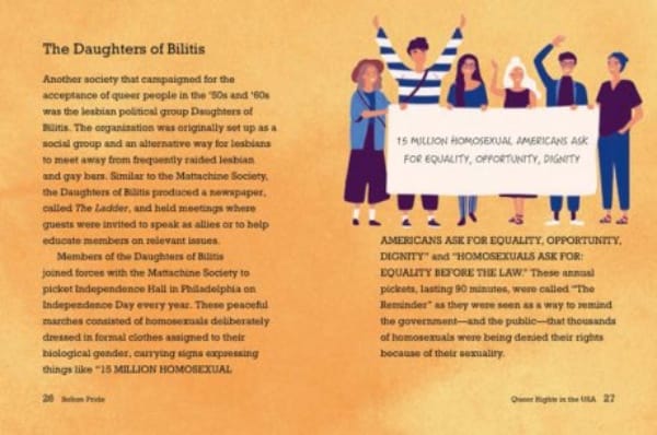 This little tome is a neat pocket-sized hardback, which gives an overview of Pride. Split into four chronological parts – Before Pride, First Pride, Prise Rises and Keeping Pride Alive – with a handy appendix at the end.