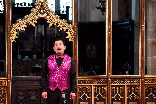 Kieran Moore gave us an emotional Out There from Disney’s Hunchback , gentle , haunting and with Queer and lockdown overtones with its theme about coming out of the shadows. John Lennon’s Imagine, sung by Sadao Udea , with its simple message of peace and love , started softly but had great soaring top notes – as did many of this concert’s performers.