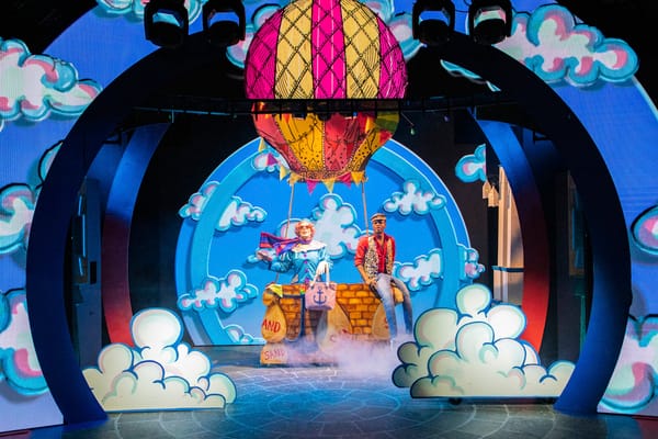 The storyline includes a balloon ride to a holiday island in the Med, where we meet Cyril’s twin brother Cecil, the camp host of Sultan’s Queer resort ( Bradley Walwyn again).