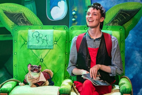 As the title hints, there are more Dick jokes per page of script than you can wave a dildo at, not all in the best possible taste, but fitting to the style of the production. And lapped up by the audience. And Baldwin’s Dame is everything you could wish for, and his comic timing is absolutely immaculate. As well as audacious rats, we get a rare lizard and best of all Oreanna- Dick’s inseparable pug, a puppet which he manipulates with great skill.