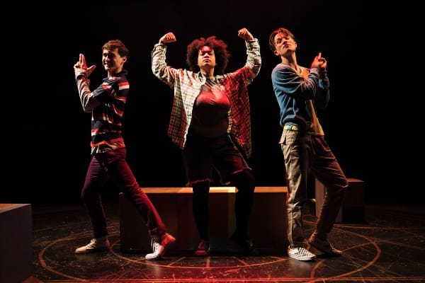 And if it still doesn’t quite come out right, you just give the mechanism another few turns and start again, age 12. This is the clever premise of dark comedy Dumbledore Is So Gay, by Robert Holtom. It’s a Queer coming-of-age play where our young hero Jack, played with bouncy, smiley ease by Alex Britt, falls in love in a French lesson with school mate Ollie, played with gruff bravado by Max Percy.