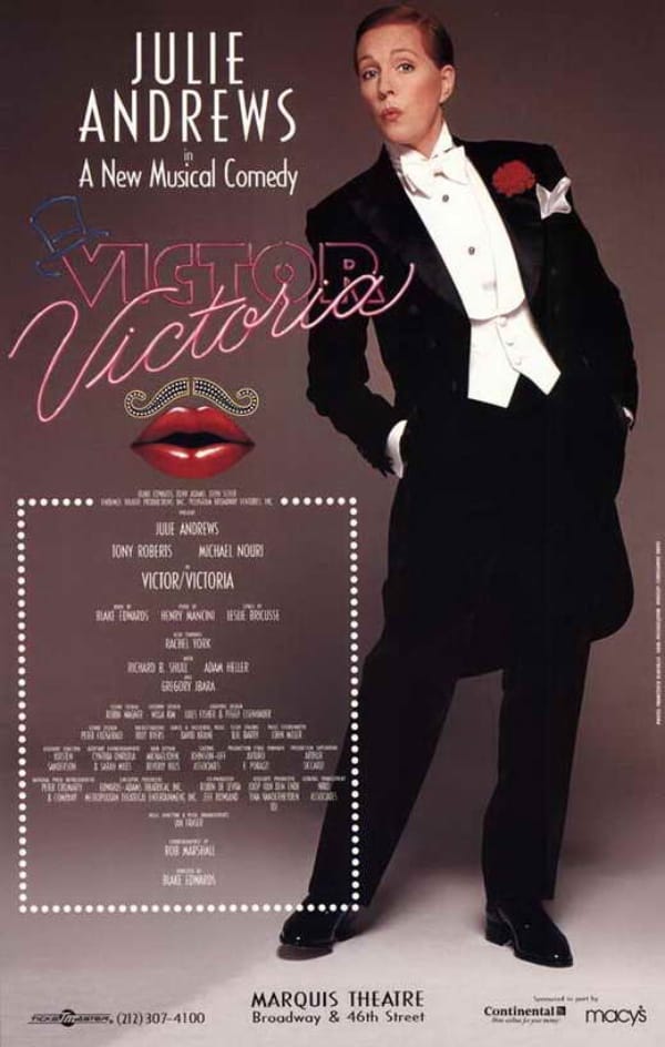 In 1995 Julie Andrews recreated her 1980’s film role as the woman, pretending to be a man pretending to be a woman – in the stunning musical Victor/Victoria.
