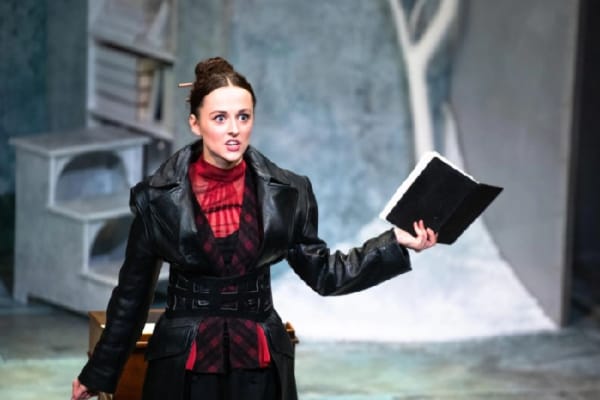 Eilidh Loan as the writer is frenetic, funny, feisty and very annoying. She constantly wise-cracks her way through the proceedings – sometimes with great glee announcing she’s going to kill off another character – then doing so with the stroke of her pencil.