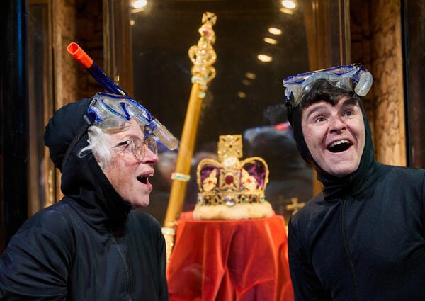 After the family set up of the first half of the show we get an opening audience participation Strictly Ballroom type second half which is seriously silly and then we move on to Ben’s great adventure, where he and Gangsta Granny raid the Tower of London to steal the Crown Jewels. It’s a fun set up, done in the style of glorious panto and the journey getting to the Tower is a wonderful piece of physical theatre building to a crescendo.