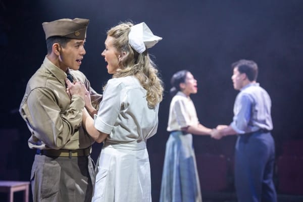 There’s pain, anguish and death in this show but its overwhelming theme is love – love of family, love of country. And there are inter-generational and inter-cultural conflicts too. It’s a complex mix. The two central pair of lovers are all brilliantly played. Telly’s strong melodic line and exciting vocal range is matched by a visceral physicality. Close your eyes – and I mean this as a compliment – and Aynrand could be Broadway legend Lea Salonga who originated the part a few years ago. She has a soaring, pure but gutsy quality – this is a show of strong women. Megan Gardiner as the nurse equally pulls no punches and has a forthright and dramatic vocal range.
