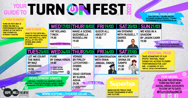 West End and Broadway singer/composer/orchestrator Jason Carr has accompanied wonderful Musical Theatre divas like Maria Friedman and Lorna Dallas but for Hope Mill Theatre’s Turn On Fest he streamed his inner and outer queerness in a delightful evening of favourites and newbies .