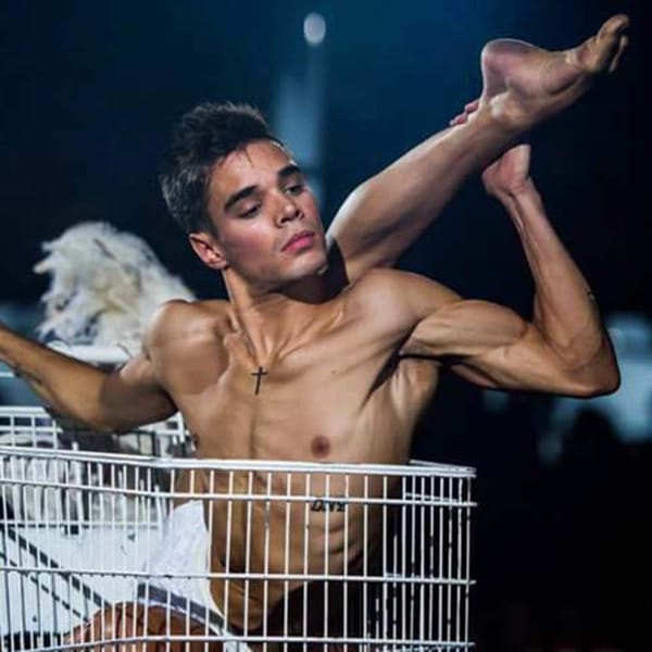 There was a wide range of established cabaret and spectacle acts, a charmingly bespoke juggling gent, two ladies who entwined with aerial hoop work, a beautifully abstract gymnastic contortionist David Pereira who reminded me of a young Nureyev. His first appearance is a huge pair of wings and a shopping trolley, his second a fully naked body shaving routine which is as sensually beautiful as it is lithely enthralling, followed by a rather fit and sexy Cyr Wheel cowboy.