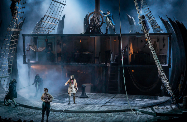 The other two stars of the show are the wonderful set by Lizzie Clachan which on its huge revolve ascends to the top most sails and the stars above, and descends to the treacherous tunnels of the island.