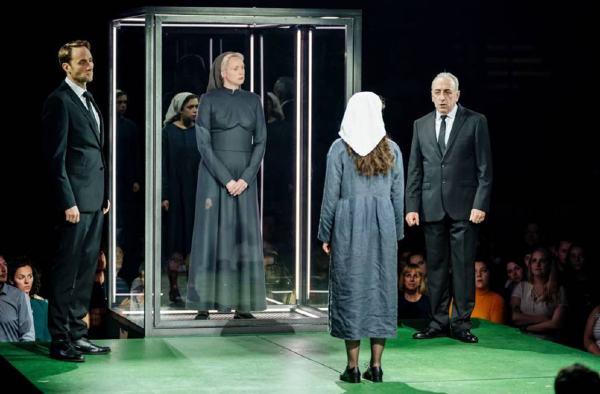 Director Nicholas Hytner is quoted as calling the original misogynistic and therefore ripe for mucking about with. Now I have no objection to fiddling with the Bard to make him “ relevant “ to today’s audiences, but the gender swapping he performs in this immersive production seems to add nothing at all.