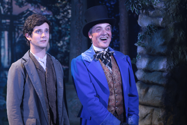 In its more than 20 tracks it perfectly captures the feel of Victorian times- blending folk ballads with music hall, Gilbert and Sullivan sound-alikes and even a nod to the rhymes and structures of Sondheim. But Charles Miller’s tunes are always melodious, and mostly joyful, often delivered with clear, light, effortless tones by the two principal Gay lovers. MD Aaron Clingham leads a small band that perfectly render the wide variety of musical genres.
