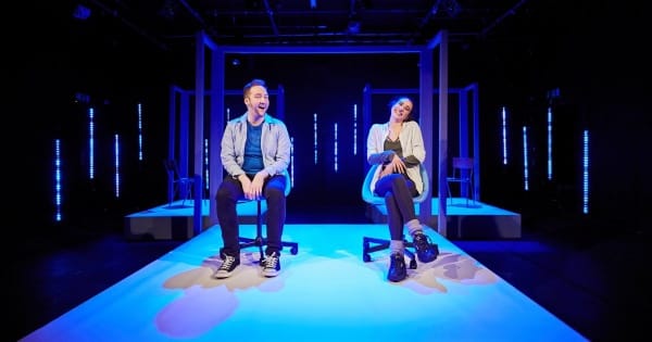 Directed with clarity and pace by Adam Lenson, they perform on an almost bare stage at Southwark Playhouse but the show is overlaid with complex high tech effects that are highly reminiscent of the hit musical Dear Evan Hansen.